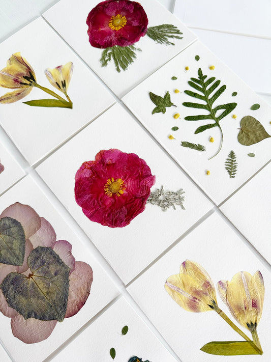 Princeton Collegiate card - Printed real pressed flowers and ivy leaves blank card