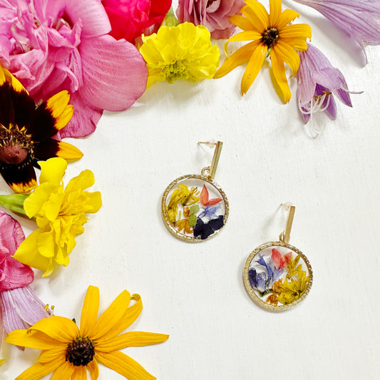 Christmas Wreath Earrings with Real Flowers and Leaves