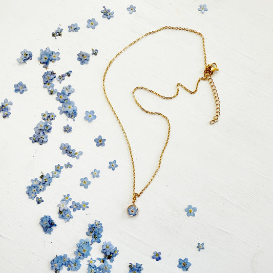 Dainty necklace with Forget-me-not and Mother-of-pearl