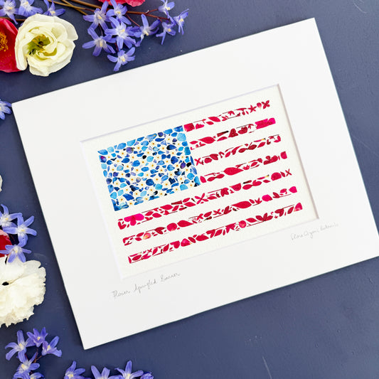 The Flower Spangled Banner signed matted print of USA flag in pressed flowers