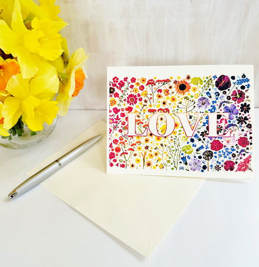 Princeton Collegiate card - Printed real pressed flowers and ivy leaves blank card