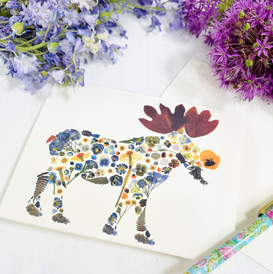 Botanical Moose - Printed pressed flowers blank 5x7 greeting card