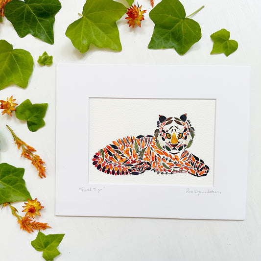 Floral Tiger - signed matted print of a tiger made of pressed flowers and leaves