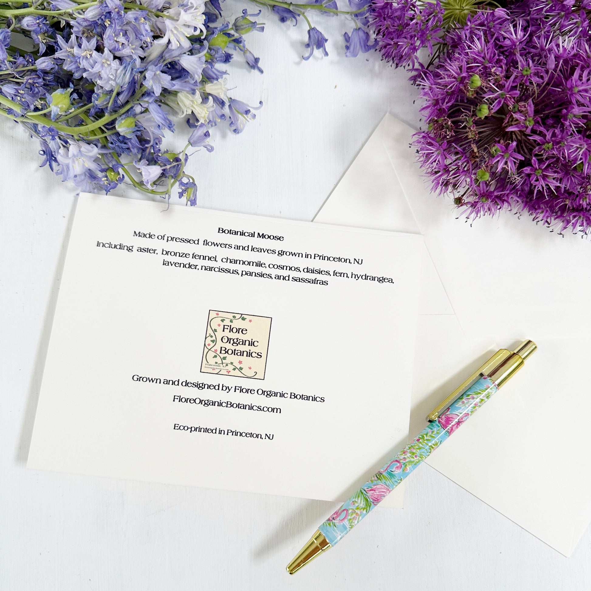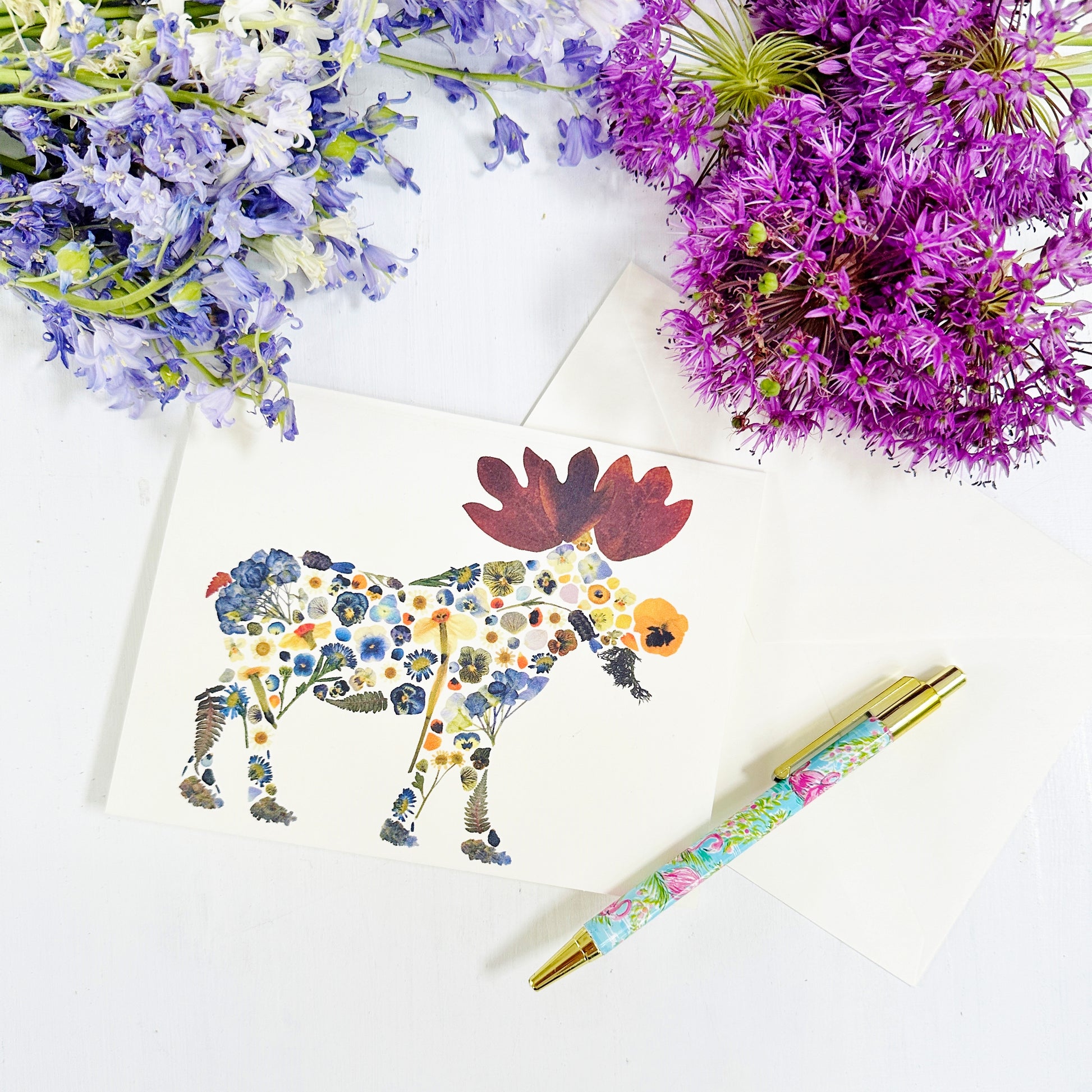Botanical Moose - Printed pressed flowers blank 5x7 greeting card