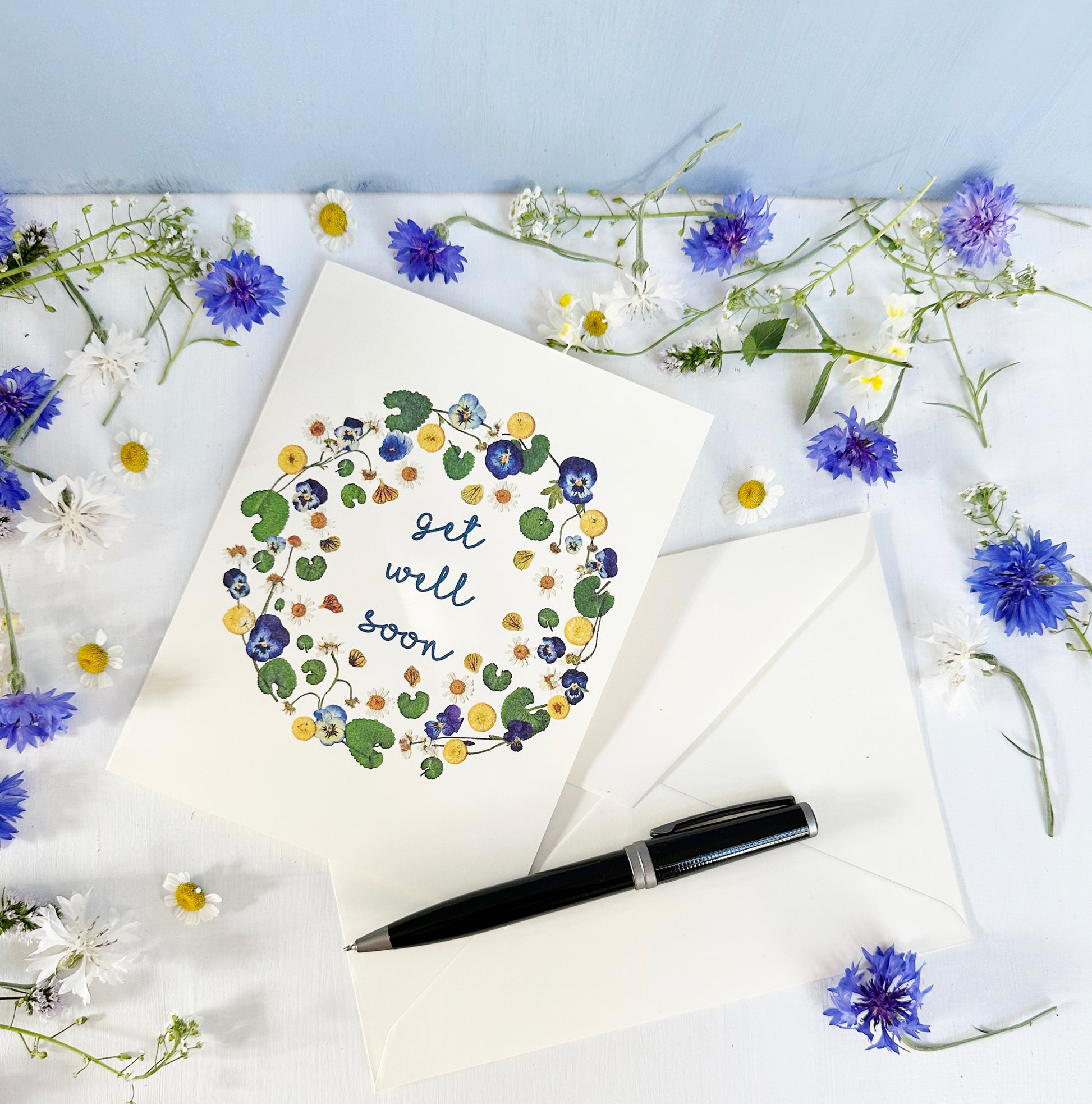 Get Well Soon Card - Printed Pressed Flower Wreath